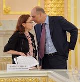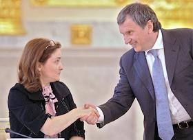 Президент НК "Роснефть" Игорь Сечин (слева) и помощник президента России Эльвира Набиуллина (справа) на заседании Комиссии при президенте России по вопросам стратегии развития топливно-энергетического комплекса и экологической безопасности (ТЭК). Заседание прошло в Александровском зале Большого Кремлевского Дворца.
