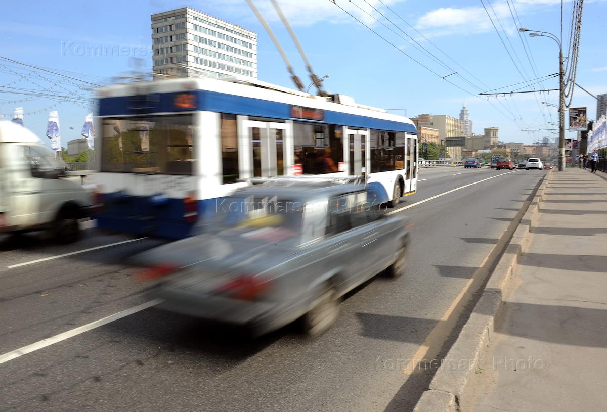 Жанровая фотография. Нарушение правил дорожного движения. Автомобиль на полосе для приоритетного движения наземного общественного пассажирского транспорта на Ленинградском проспекте.