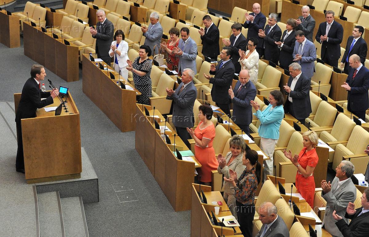 Депутаты во время последнего пленарного заседания Государственной думы России в весенней сессии.