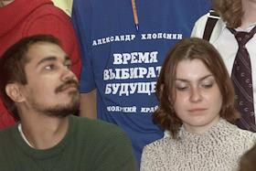 Выборы губернатора Красноярского края. Во второй тур вышли спикер местного законодательного собрания Александр Усс и губернатор Таймыра Александр Хлопонин. Разрыв между ними составил всего около 2%. Рекламный флажок в поддержку Александра Усса и маленькая девочка.