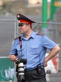 Жанровая фотография. Сотрудник ДПС ГИБДД во время дежурства на V автомобильном шоу "Moscow City Racing 2012".