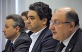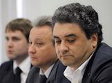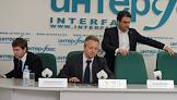 Слева направо: лидер Коммунистической партии социальной справедливости Юрий Морозов, лидер Демократической партии России Андрей Богданов, лидер Социал-демократической партии России Виктор Милитарев на пресс-конференции лидеров пяти новых партий. Пресс-конференция на тему: "Подготовка к осенним региональным и муниципальным выборам" прошла в центральном офисе агентства "Интерфакс".