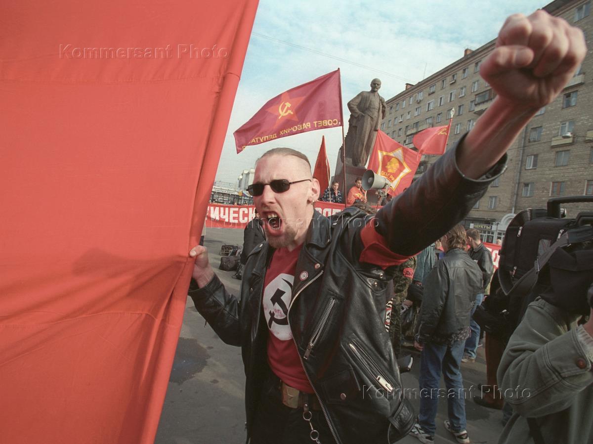 A participant of the ultra-left youth rally 'Anti-Capitalism 2002' poses for a photo. The rally was spearheaded by the National Bolshevik Party (NBP), Red Youth Vanguard (AKM) movement, and Revolutionary Communist Youth Association (of Bolsheviks) (RKSM(b)).