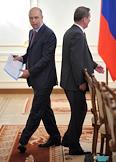 Руководитель Администрации президента России Сергей Иванов (слева) и президент России Владимир Путин (справа) во время первого заседания экономического совета при президенте России. Заседание прошло в Ново-Огарево .