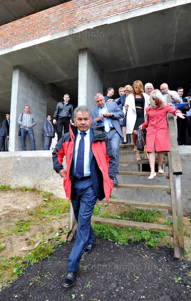 Губернатор Московской области Сергей Шойгу (в центре) во время своей рабочей поездки в город Химки осмотрел проблемные объекты жилищного строительства.
