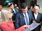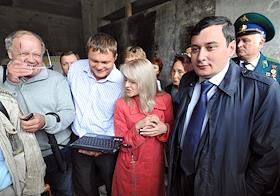 Рабочая поездка губернатора Московской области Сергея Шойгу в город Химки. Заместитель председателя комитета Государственной думы по безопасности и противодействию коррупции Александр Хинштейн (справа) во время осмотра проблемных объектов жилищного строительства и встречи с инициативной группой обманутых дольщиков.