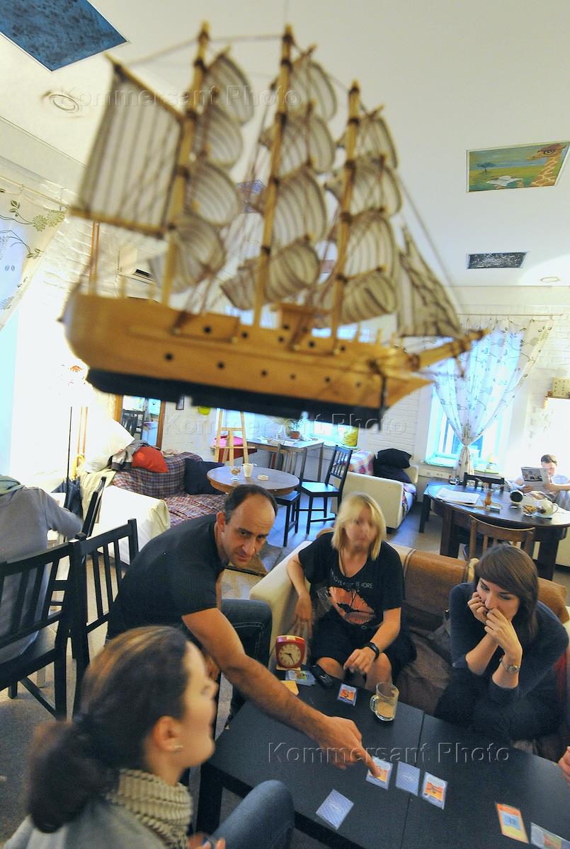 Кафе-ресторан с домашней атмосферой "Циферблат". Плакат с надписью "Мы собираем все для Крымска".