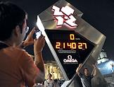 XXX Летние Олимпийские игры. Олимпийские часы, отсчитывающие часы до начала церемонии открытия Олимпийских игр в центре Лондона.