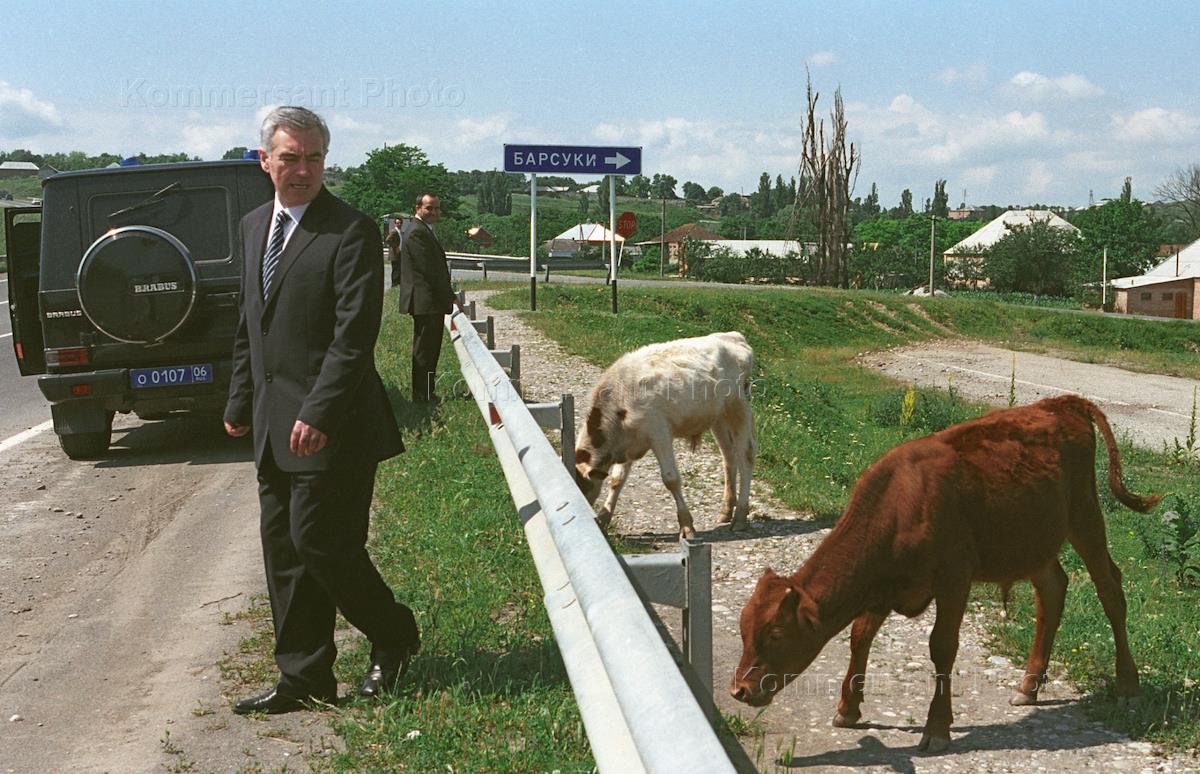 Президент Республики Ингушетия Мурат Зязиков. У дороги пасутся телята.