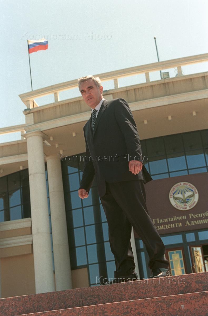 Президент Республики Ингушетия Мурат Зязиков у здания администрации президента.