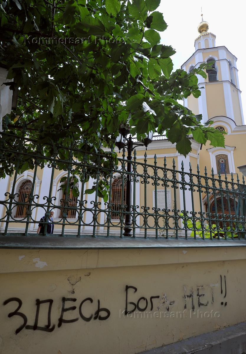 Надпись на заборе православного храма у станции метро "Сокол".