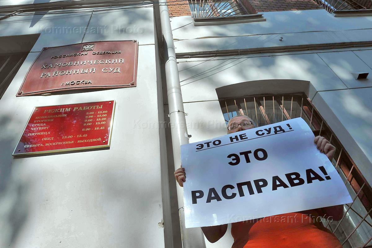 Митинг по поводу слушания по существу уголовного дела участниц панк-группы Pussy Riot, обвиняемых в хулиганстве в Храме Христа Спасителя, прошел у здания Хамовнического районного суда.