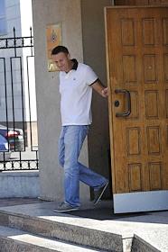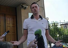 Гражданский активист, блогер Алексей Навальный после посещения Следственного комитета России, куда он был вызван для предъявления ему официального обвинения по "делу Кировлеса".