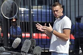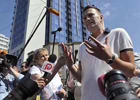 Гражданский активист, блогер Алексей Навальный у Следственного комитета России, куда он был вызван для предъявления ему официального обвинения по "делу Кировлеса".