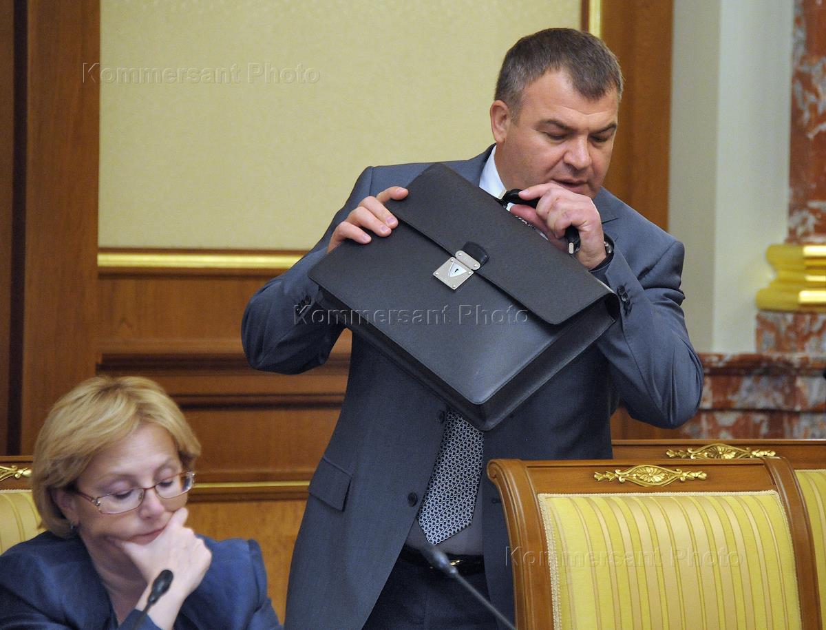 Министр обороны России Анатолий Сердюков на заседании правительства России.