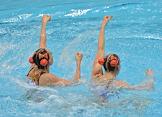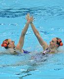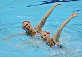 XXX Летние Олимпийские игры в Лондоне. Члены Олимпийской сборной России по синхронному плаванию Светлана Ромашина и Наталья Ищенко во время соревнований. Спортсменки Светлана Ромашина и Наталья Ищенко выиграли золотые медали по синхронному плаванию.