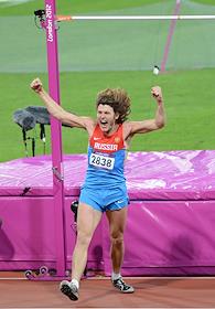 XXX Летние Олимпийские игры в Лондоне. Член Олимпийской сборной России по прыжкам в высоту Андрей Сильнов на соревнованиях.