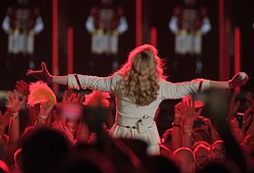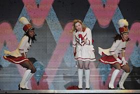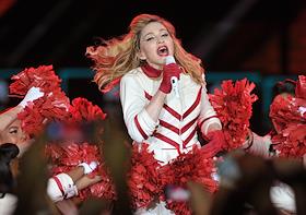 Американская певица Мадонна во время выступления на концерте в спорткомплексе (СК) "Олимпийский".