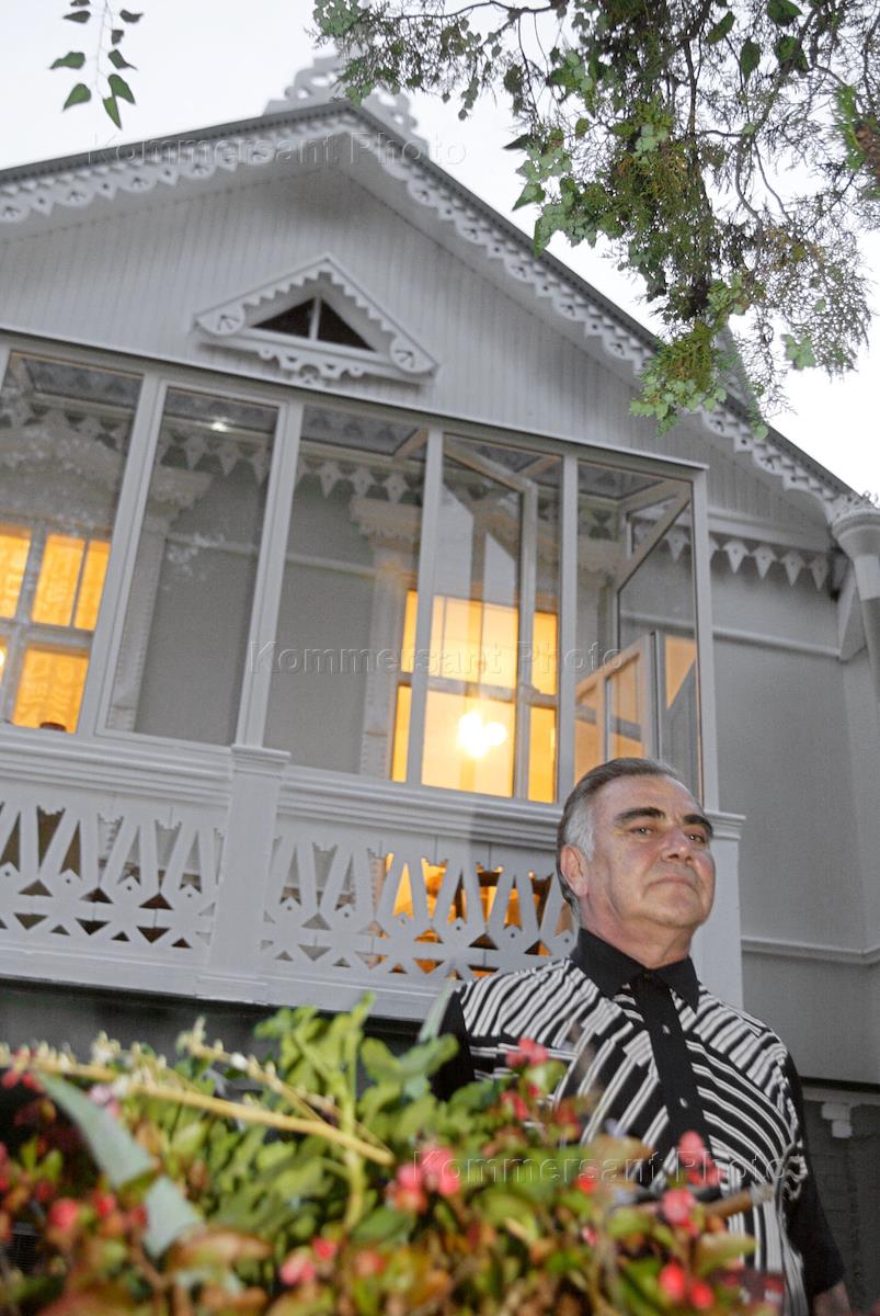 Russian republic of Kabardino-Blakaria President Valery Kokov is interviewed in the garden surrounding his own house.