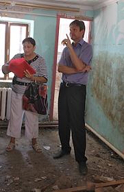 Губернатор Краснодарского края Александр Ткачев (справа) во время рабочей поездки в город Крымск. Александр Ткачев проинспектировал строительные площадки Крымска, социальные объекты города.