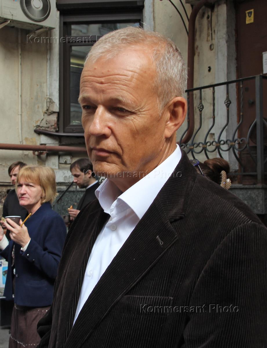 Внучатый племянник Анны Илларионовны Кутузовой младшей сестры фельдмаршала Михаила Кутузова Александр Полянский во время церемонии возложения цветов к мемориальнной доске фельдмаршалу Михаилу Кутузову на фасаде дома на набережной Кутузова, 30.