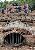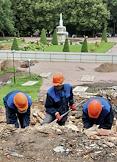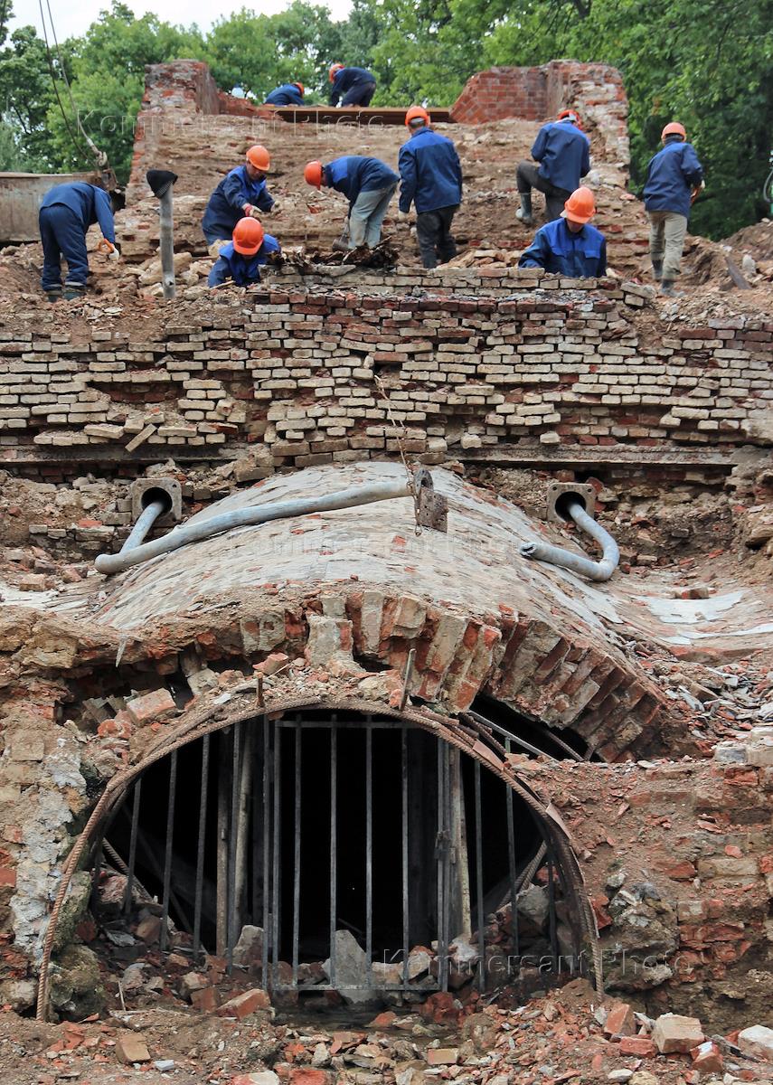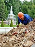 Государственный музей-заповедник "Петергоф". Капитально-реставрационный ремонт каскада "Шахматная гора". Кирпичи XVIII века будут использованы для воссоздания каскада.