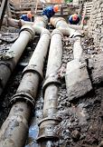 Государственный музей-заповедник "Петергоф". Капитально-реставрационный ремонт каскада "Шахматная гора". Подводящие чугунные трубы, установленные при строительстве каскада в начале XVIII века, в процессе реставрации будут сохранены.