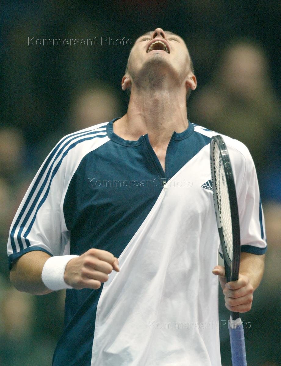 Российский теннисист Марат Сафин во время полуфинального матча "Кубка Дэвиса". Матч прошел во дворце спорта "Лужники".