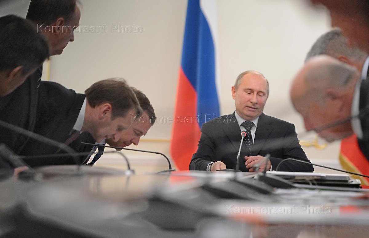 Полномочный представитель президента России в Южном Федеральном округе Владимир Устинов (в центре) на совещании Совета безопасности России в расширенном составе в Ново-Огареве.