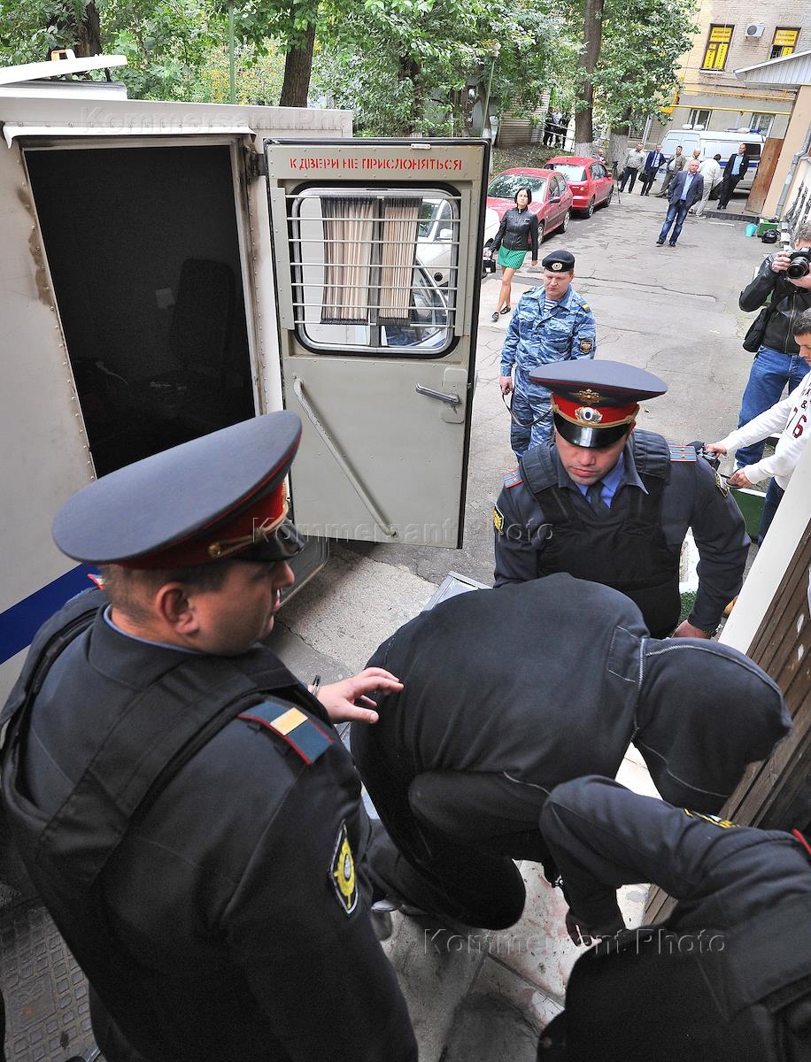 Рассмотрение ходатайства следствия на арест влиятельного криминального авторитета Марка Мильготина и сооснователей "Парламент групп" Юрия Манилова и Сергея Куприянова (справа) подозреваемых в вымогательстве, прошло в Тверском суде.