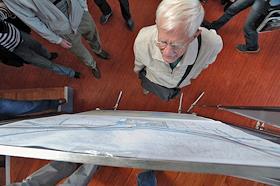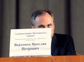Сотрудник администрации Приморского района Ярослав Верховец во время общественных слушаний по строительству комплекса зданий "Лахта-центр" в здании администрации Приморского района.
