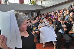 Общественные слушания по строительству комплекса зданий "Лахта-центр" прошли в здании администрации Приморского района.