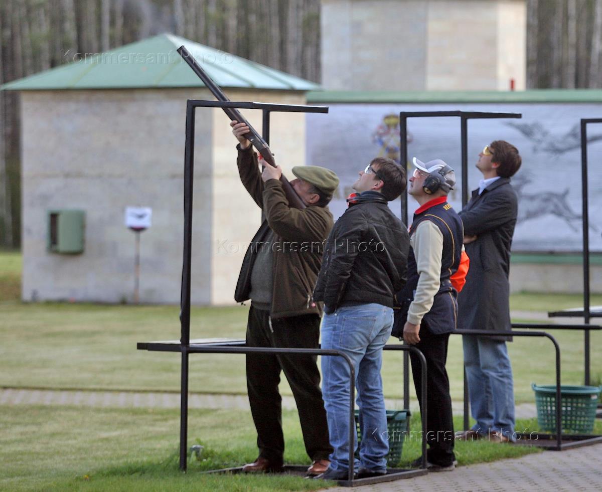 Председатель совета директоров Новолипецкого металлургического комбината Владимир Лисин (второй справа) во время соревнований по стрелковым видам спорта, посвященным 275-летию Указа императрицы Анны Иоанновны об учреждении садочной стрельбы.