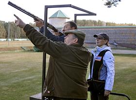 Председатель совета директоров Новолипецкого металлургического комбината Владимир Лисин (слева) во время соревнований по стрелковым видам спорта, посвященным 275-летию Указа императрицы Анны Иоанновны об учреждении садочной стрельбы.