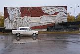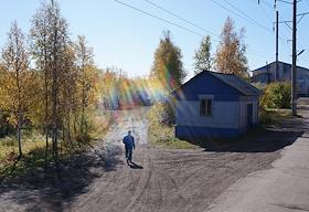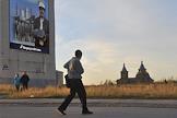 Виды Воркуты. Плакаты страховой компании "СОГАЗ" и ОАО "Воркутауголь" на торцах жилых домов.