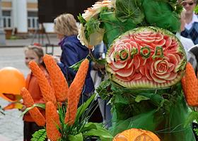 Ежегодная выставка-ярмарка "Воронеж - Город-сад" прошла на площади Ленина. Карвинг из овощей и фруктов.