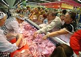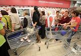Жанровая фотография. Покупателия в Торговом зале гипермаркета "Соседи". Очередь в мясном отделе.