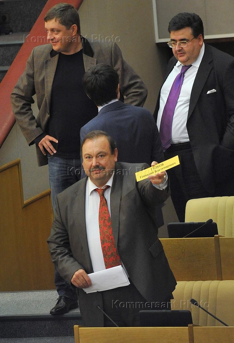 Член комитета Государственной думы (ГД) России по безопасности и противодействию коррупции Геннадий Гудков (справа) на заседании Госдумы.