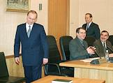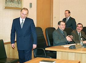 Acting President Vladimir Putin (left) during the presidential registration in the Central election committee