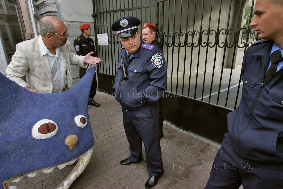 Участники акции протеста против реконструкции Гостиного двора. Плакат с надписью "Киев - наш город!".