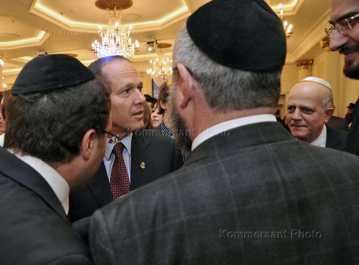 From left to right: From left to right: Jerusalem Mayor Nir Barkat, president of the Russian Jewish Congress Yuri Kanner, Israeli Ambassador to Russia Dorit Golender-Drucker and the Deputy Foreign Minister of Russia Mikhail Bogdanov during the celebration of the Jewish New Year (Rosh Hashanah), at the hotel "Ukraine".