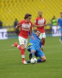 Чемпионат России по футболу, 9-й тур. Матч между командами "Спартак" (Москва) - "Ростов" (Ростов-на-Дону). Игрок "Спартака" Ари (слева) и вратарь команды "Ростов" Плетикоса Стипе (справа) во время игры на стадионе СК "Лужники".