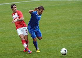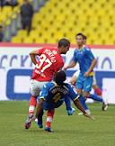 Чемпионат России по футболу, 9-й тур. Матч между командами "Спартак" (Москва) - "Ростов" (Ростов-на-Дону). Игроки команды "Спартак" Жано (слева) и команды "Ростов" Александр Гацкан (в центре) во время игры стадионе СК "Лужники".