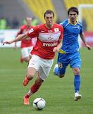 Чемпионат России по футболу, 9-й тур. Матч между командами "Спартак" (Москва) - "Ростов" (Ростов-на-Дону). Игрок "Спартака" Артем Дзюба (слева) и игрок команды "Ростов" Инал Гетигежев (справа) во время игры на стадионе СК "Лужники".