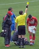Чемпионат России по футболу, 9-й тур. Матч между командами "Спартак" (Москва) - "Ростов" (Ростов-на-Дону). Врач команды "Спартак" Михаил Вартапетов (слева), главный арбитр Сергей Лапочкин (в центре), игрок команды "Спартак" Марек Сухи (справа) на стадионе "Лужники".
