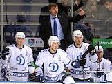 Континентальная хоккейная лига (КХЛ). Главный тренер команды "Динамо" Олег Знарок (в центре) во время матча между командами "Ак Барс" (Казань) - "Динамо" (Москва). Матч прошел в Ледовом дворце "Татнефть Арена".