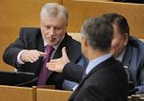 Лидер партии "Справедливая Россия", член комитета Государственной думы (ГД) России по жилищной политике и жилищно-коммунальному хозяйству Сергей Миронов (слева) во время думского заседания.
