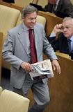 Председатель комитета Государственной думы России по делам национальностей Гаджимет Сафаралиев (справа) во время пленарного заседания Госдумы России.