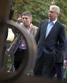 Мэр Москвы Сергей Собянин (справа) во время посещения церемонии официального открытия театра "Россия" на Пушкинской площади.