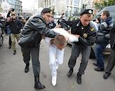 Акция движения "ОккупайМосква" в поддержку участниц панк-группы Pussy Riot. Акция прошла перед зданием Московского городского суда, где рассматривалась кассационная жалоба на приговор участницам панк-группы Pussy Riot. Сотрудники правоохранительных органов во время задержания участников акции.